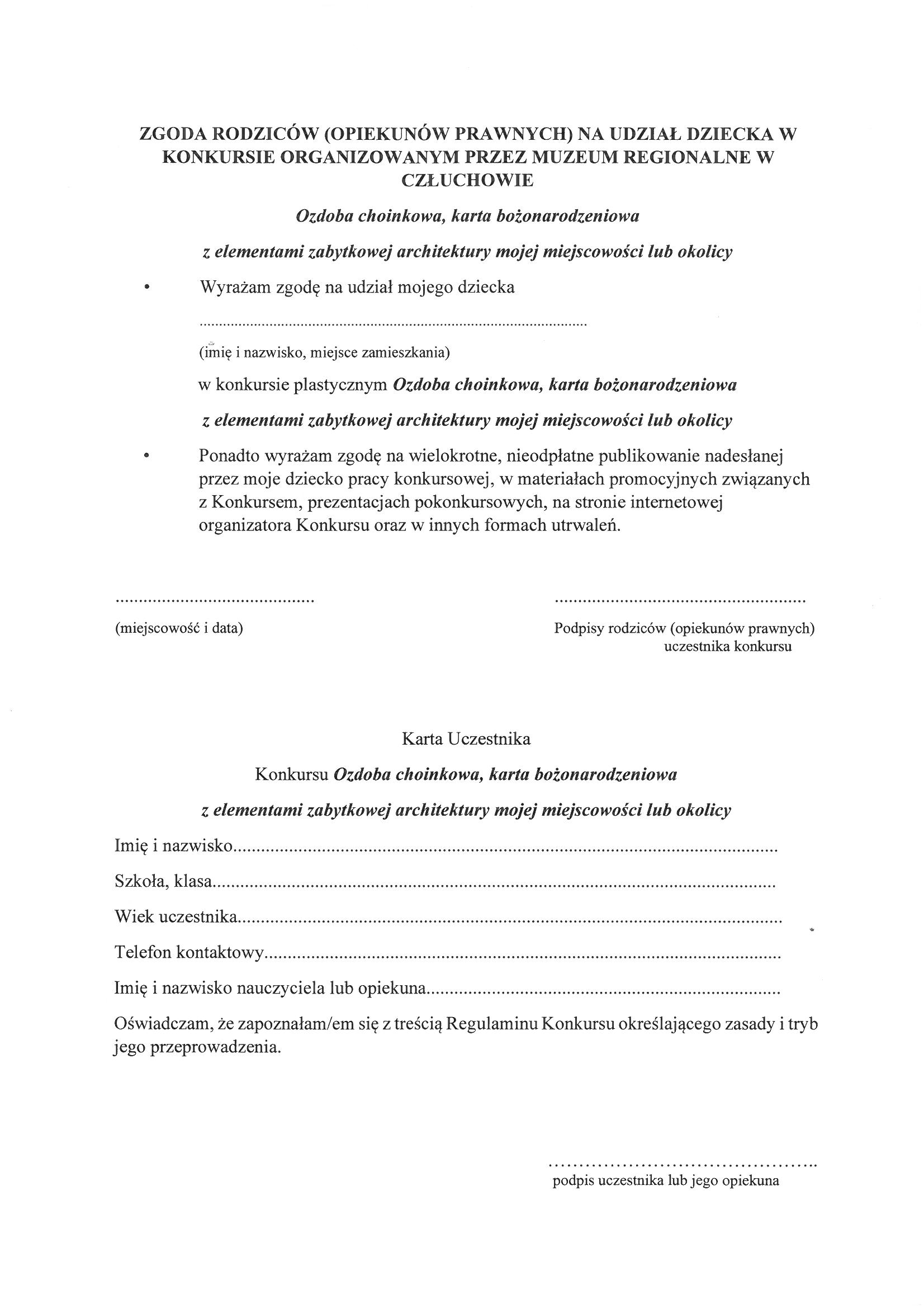 Karta uczestnika, zgoda rodziców, opiekunów prawnych
